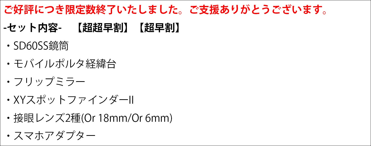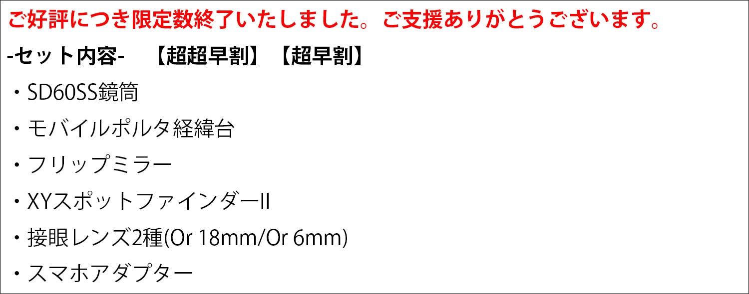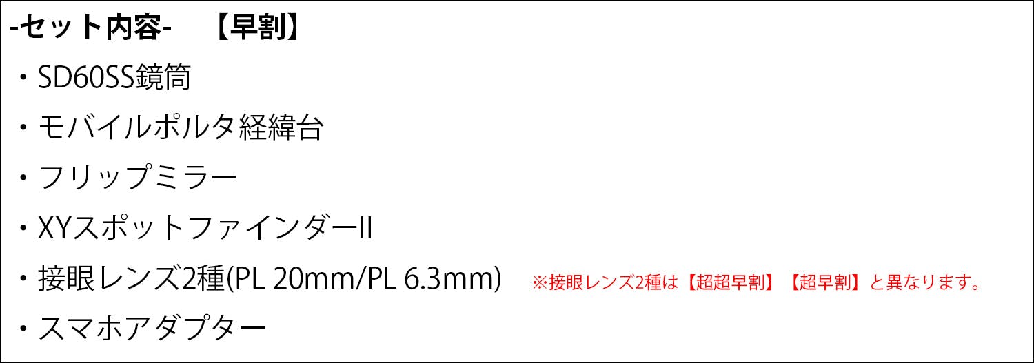 *【早割】に付属の接眼レンズ2種 は【超超早割】【超早割】と異なります。
