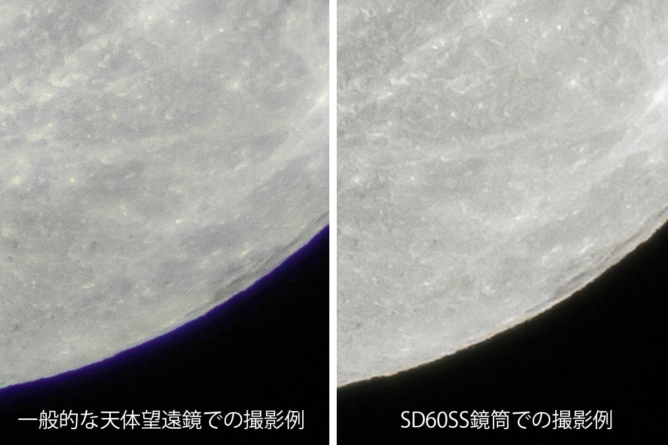 SD60SS鏡筒ではこの色収差が大幅に抑えられています。