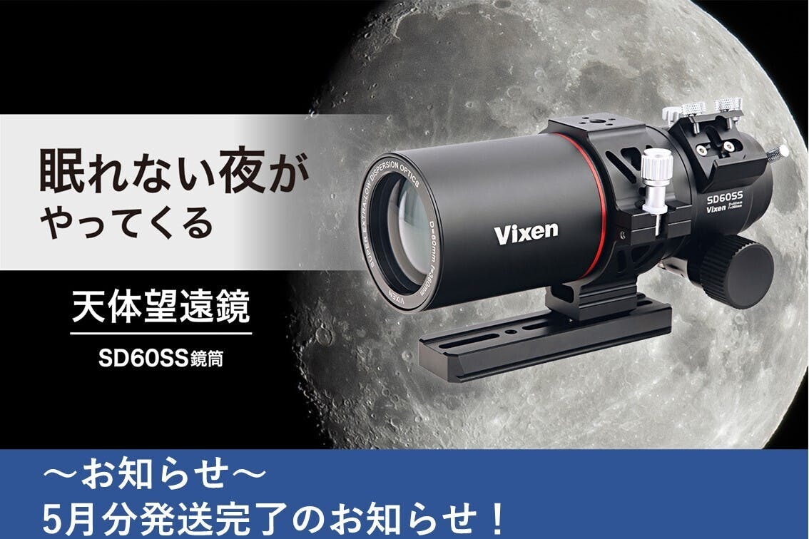 2022/05/26 16:17この度は、ご支援いただきまして誠にありがとうございます。お待たせいたしました!5月分の発送が完了いたしました。皆様のお手元に届くまで今しばらくお待ちいただけますと幸いです。5/26(木)発送分・【早割】モバイルポルタ-SD60SS・【ちょっと早割】SD60SS撮影セット・【ちょこっと早割】SD60SS撮影セットこれにて今回のクラウドファンディング全ての支援者様にリターンの発送が完了いたしました。改めてご支援いただいた皆様にお礼を申し上げます。ありがとうございます!ぜひ晴れた日にSD60SS鏡筒で星空をお楽しみいただければと思います。引き続き天体情報など、活動報告にて情報発信予定ですので、楽しみにお待ちいただけますと幸いです。 もっと見る