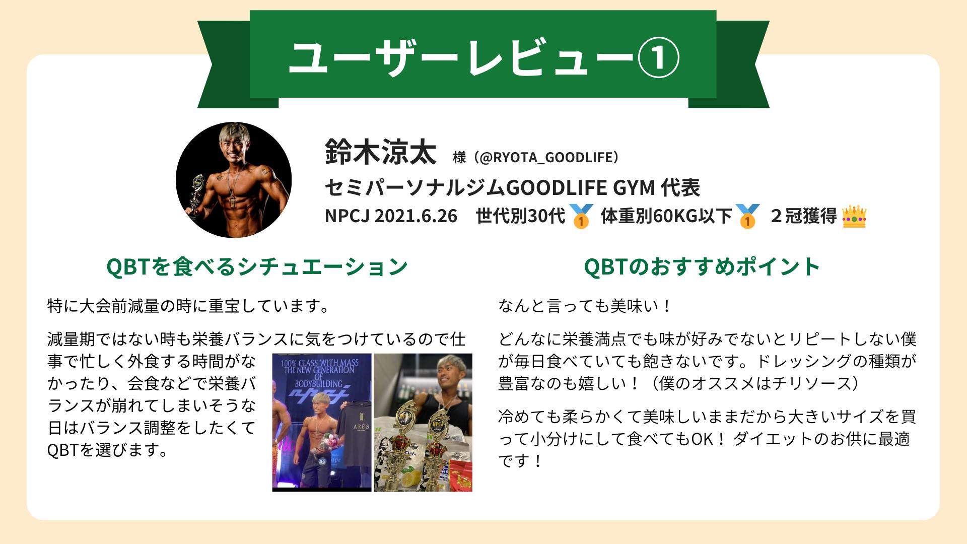 などなど、高たんぱく低糖質な特徴を活かして様々なシーンでQBTをご活用いただけます。