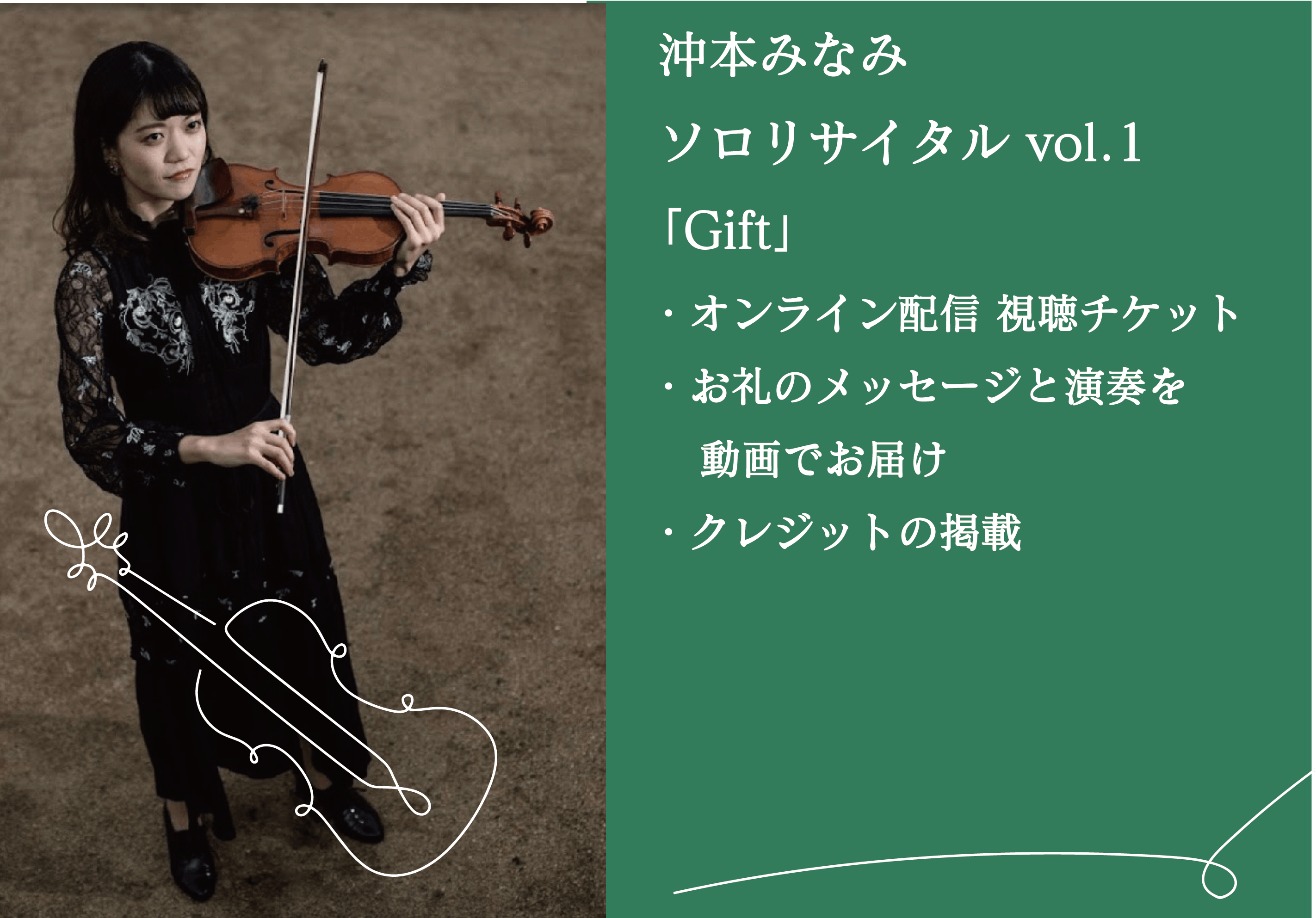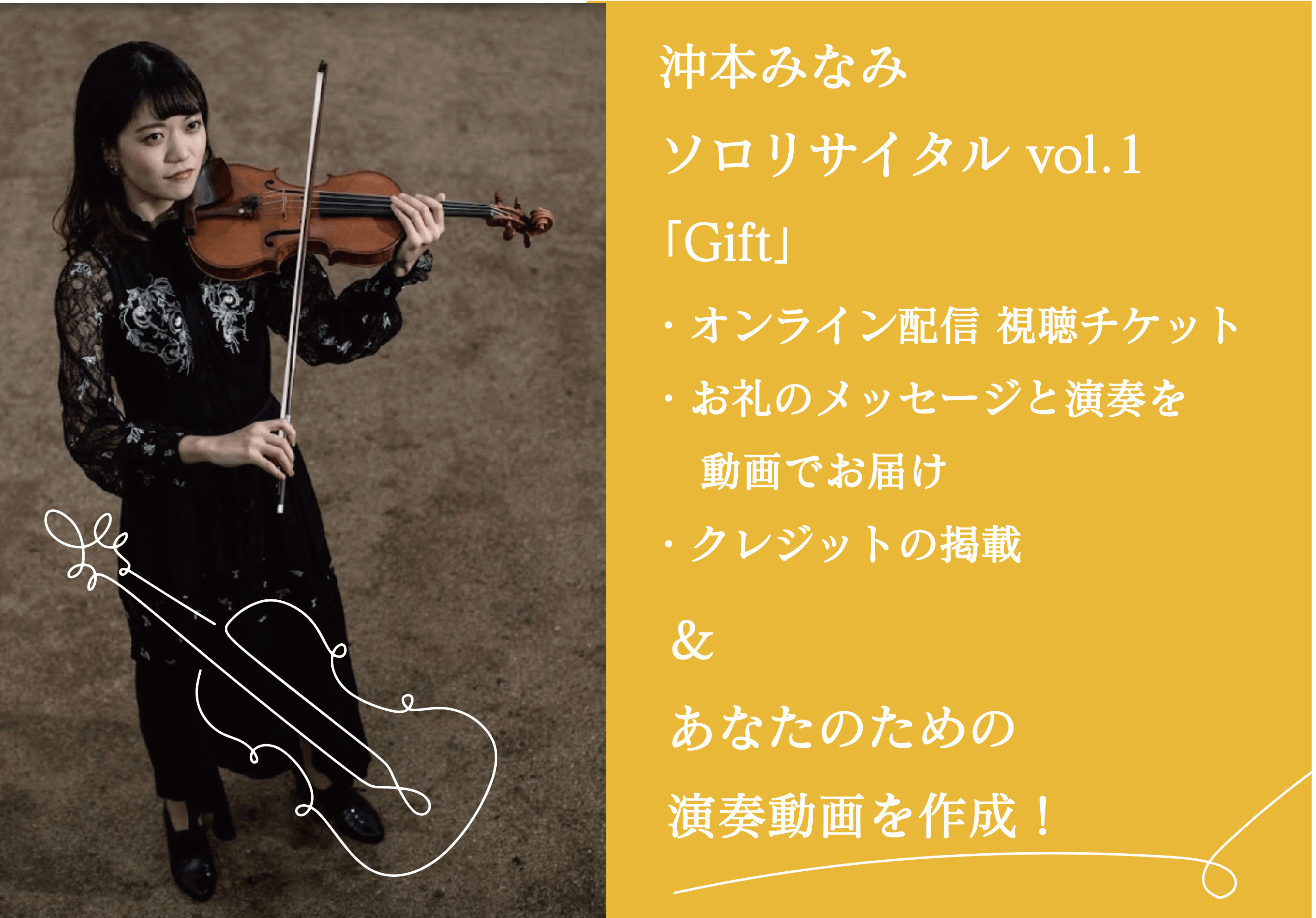 ヴァイオリニストの沖本みなみです。4歳の時に、テレビで見たオーケストラに憧れてヴァイオリンを始めました。大学生の頃から「クラシックをもっと身近に感じてもらいたい」という思いをモットーに演奏活動を行っています。