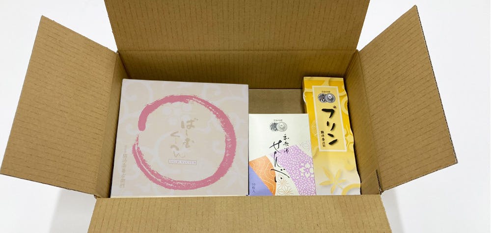 ばーむくーへん・プリン・和歌浦煎餅、それぞれ個別に包装いたします。