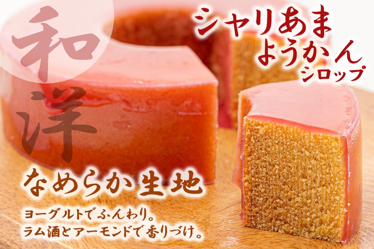そんな歴史ある煉羊羹を、生地と絶妙なバランスのシロップ状に。シャリッとした食感は、しっとりとした生地と相性抜群。お口の中で感動が広がります。