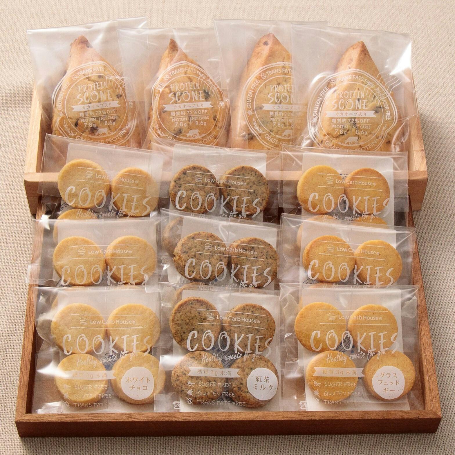 ②糖質オフスイーツセットB(カカオニブ入りプロテインスコーン4個&クッキー3種各3袋)