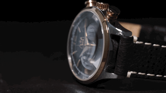 外観からの美麗さを向上するためにやや湾曲の効いたサファイアガラス(強化ガラス)を採用。
