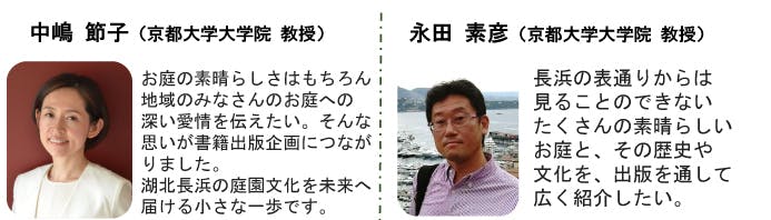 まちづくり役場が誕生して間もなく25年です。この場所で多くの方々と出会いました。観光の人、まちづくりの命題抱えた視察の方々、論文書く学生さん、皆さん「素晴らしいまちですね~」と褒めていただきました。その度に、先人たちの心意気と風光明媚な風土のおかげと思っていました。この度、埋もれていた長浜のお庭文化を調査・発見する機会をいただきました。住宅事情が刻々変わり庭の存続が危ぶまれる今日ですが、長浜の取り組みが多くのまちに伝播して、世界に誇れる日本の庭文化が守られてほしい。私たちの願いです。