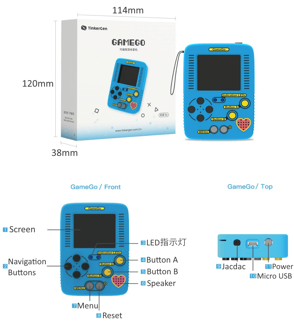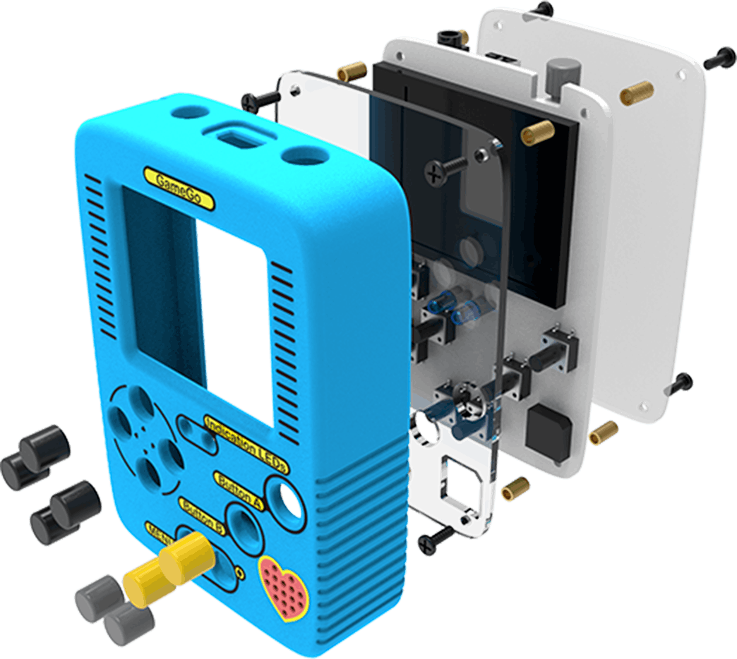 GameGoはMakeCode Arcadeでのゲームプログラミングと、レトロなアーケードゲームのアイデアをサポートするプログラマブルゲーム機です。 プログラミングの知識と創造力でゲームを作ることができます。