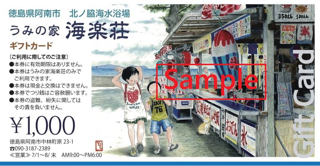2021/08/11 20:28たくさんのご支援ありがとうございます♪締切まであと9日となりました!たくさんのご支援のおかげでもうすぐ80万円の大台に乗りそうです!本当にありがとうございます。ギフトカードのデザイン完成!先日、ギフトカードの正式なデザインが完成しました。サイズ的にはお財布に入れやすい1000円札と同程度の大きさとなっております。海楽荘が存続する限り使える券となっております!1万円以上のご支援を頂いた方へのリターンとなっております♪5000円コースか1万円コースかで悩まれている方はギフトカードによるバックを考慮すると1万円コースの方がお得になりますのでご参考にしてください!ギフトカードを手に入れてコロナ禍が明けたらご家族やご友人と海で遊ぶ約束をしてみてはいかがでしょうか?最後まで拡散やご支援の程よろしくお願い致します!残り9日となりましたが機材の更新や返礼品の準備を考えると正直まだまだ以前の状態での存続は厳しい状況ではあります。お願いする事しかできず心苦しいところではありますが最後まで拡散やご支援の程、よろしくお願いいたします。笑顔で北の脇での再会をはたせる日を心待ちにしております! もっと見る