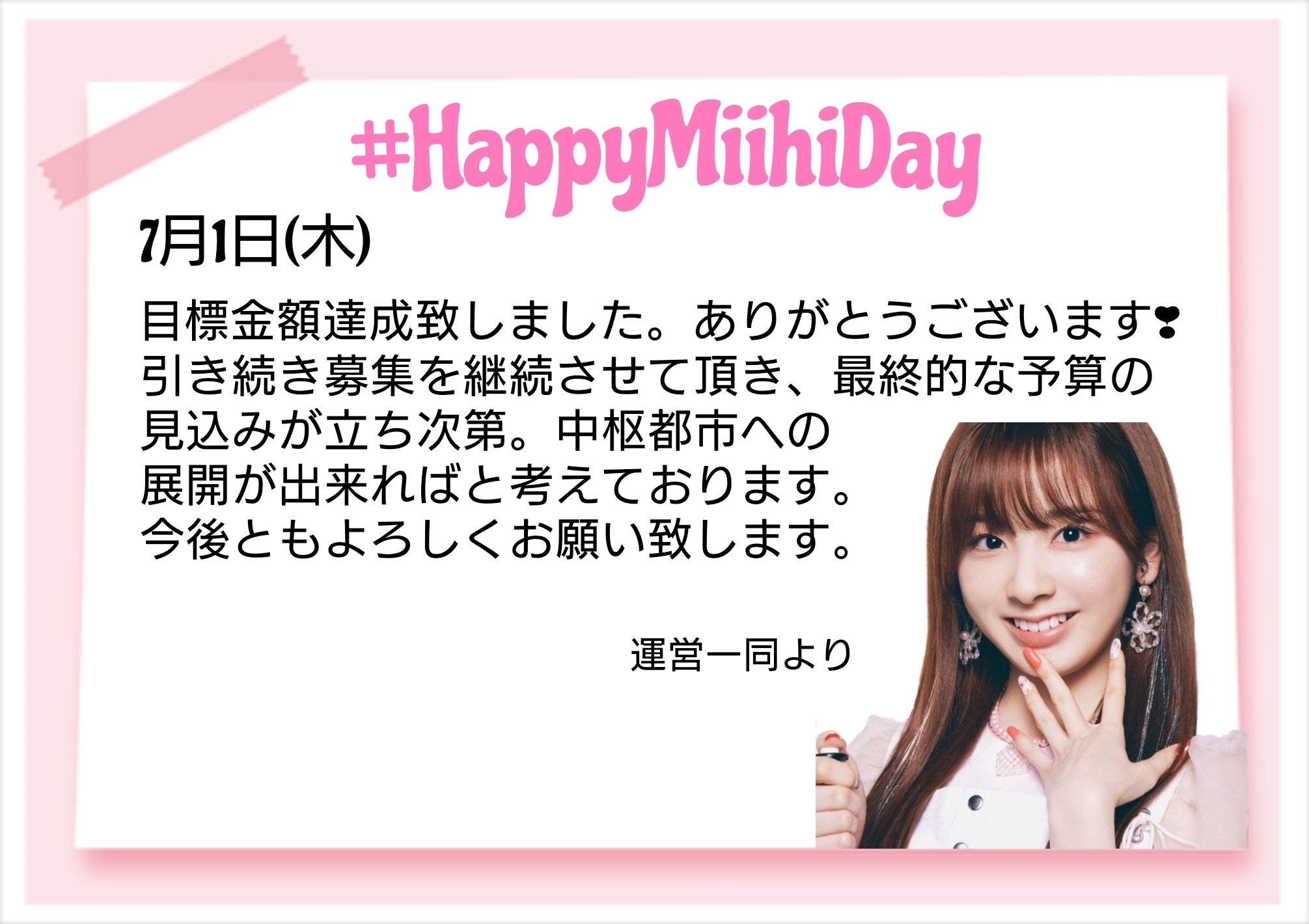 ぜひ、周りのミイヒちゃんファンやSNSなどで呼びかけていただけると嬉しいです!