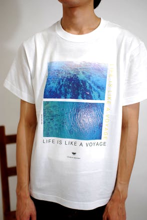 まずは行動しよう思い、すぐに自社ブランドの洋服に、自分で撮影した空撮をデザインとしてプリントしました。