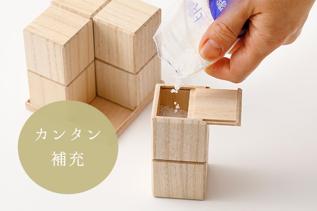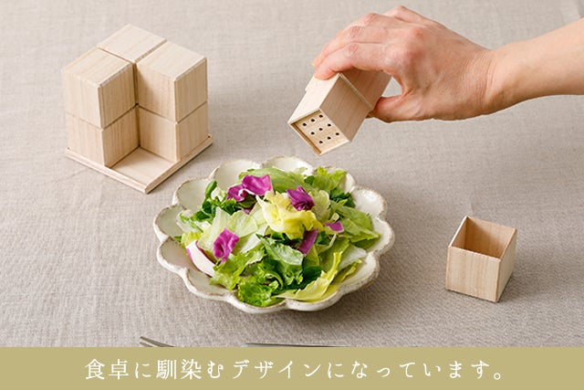 中に入れるスパイスで特にお試しいただきたいのは、自然塩。桐の調湿効果によって、湿気の多い夏の時期でもさらさらな状態を保ちます。