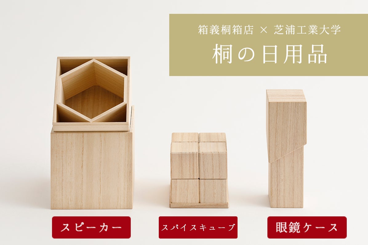 年配の方には馴染みのある桐のアイテムですが、若い世代の方の暮らしの中で使われる機会はそう多くありません。今回、桐の魅力を若い方にも伝えたいと思い、芝浦工業大学デザイン工学科の学生さんにデザインを依頼し日常の中で気軽にお使いいただける【3つの桐アイテム】を共同開発しました。