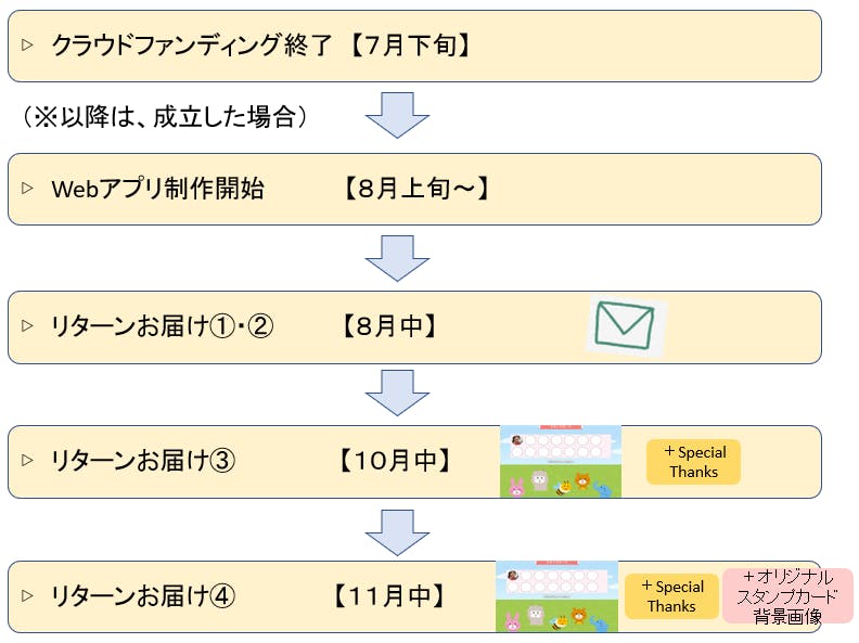 クラウドファンディング終了後のスケジュールは、以下のとおりです。