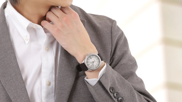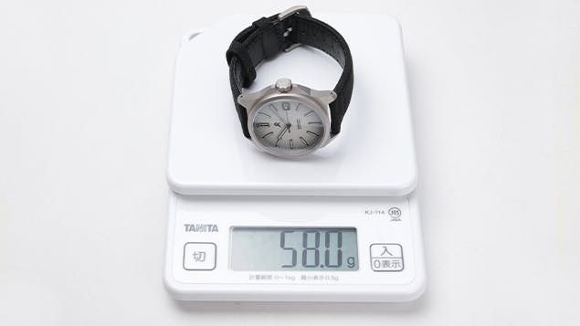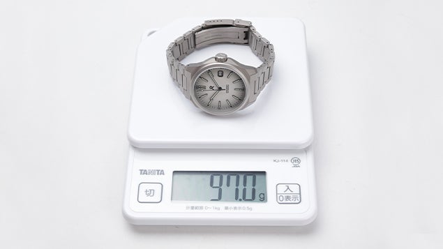 重さ97gとステンレススチール製の腕時計よりも約30%軽く、長時間つけていても快適です。