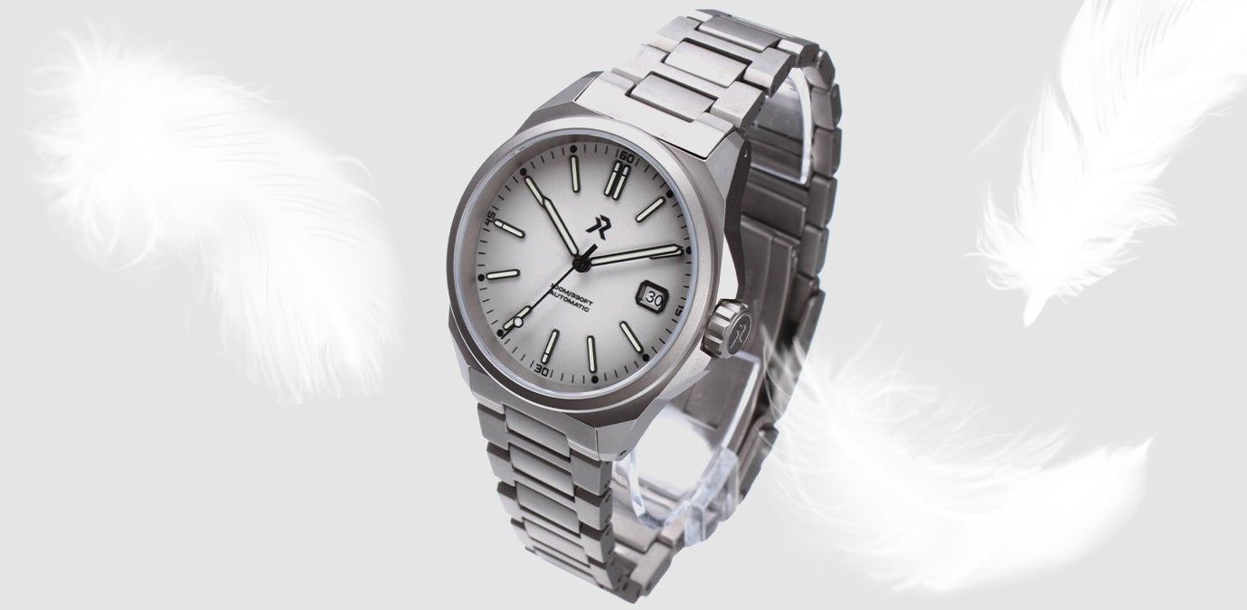 チタン製で重さわずか97g(チタンブレスレットの場合)のResolute Watchなら、着けていることを忘れてしまうほどの軽さと手首との一体感を感じられます!