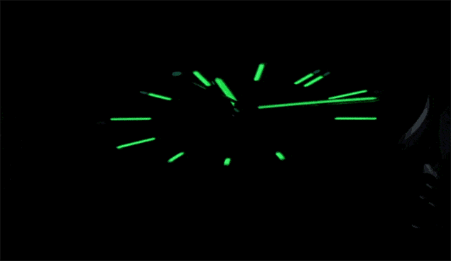 文字盤の3/4が緑に、1/4が青に光り、それは昼夜問わず綺麗で美しい文字盤を見るのに絶妙なバランスです。