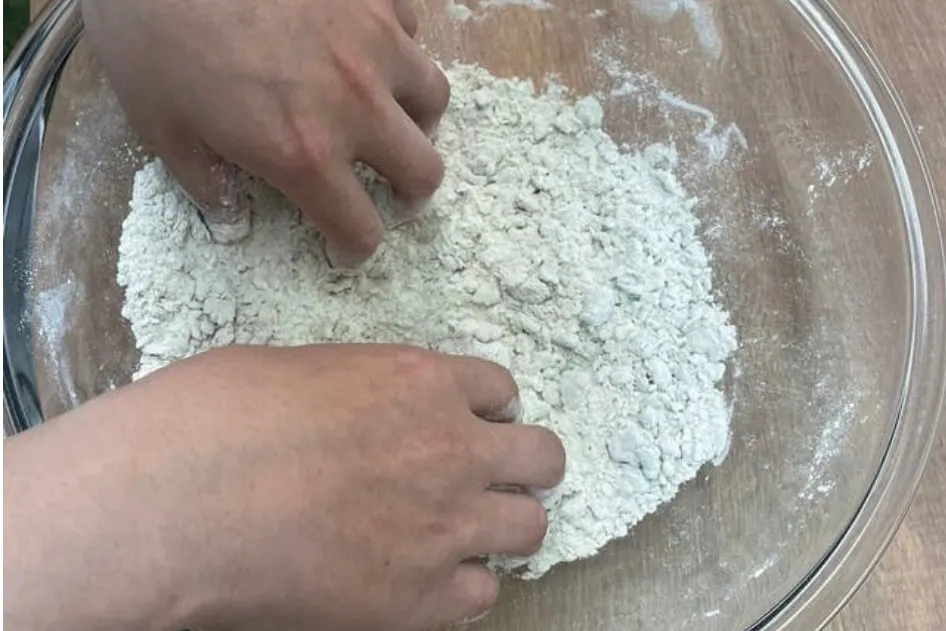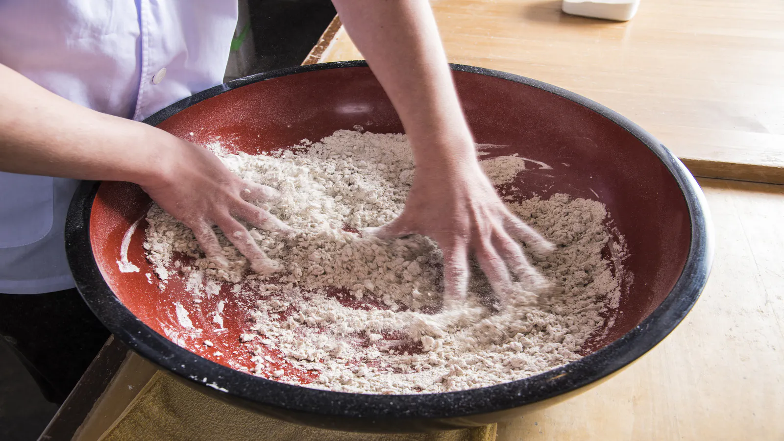 水を均等に粉に合わせていく作業は何回やっても飽きがきません!