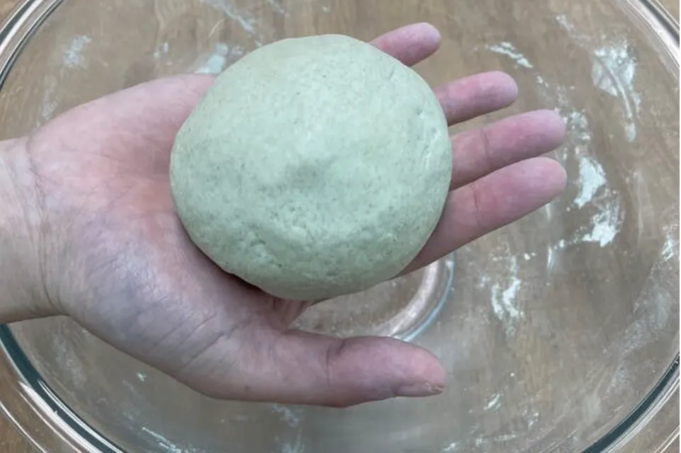 ②こねながら、空気を抜き、一つにまとめて耳たぶくらいのかたさが目安です。