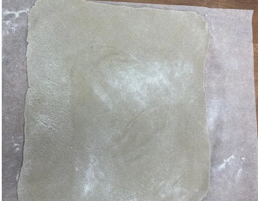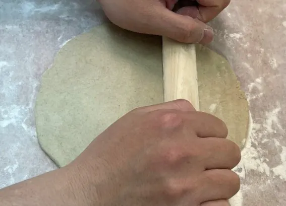 ③生地を伸ばしていきます。厚さは1.5mmくらいが目安です。