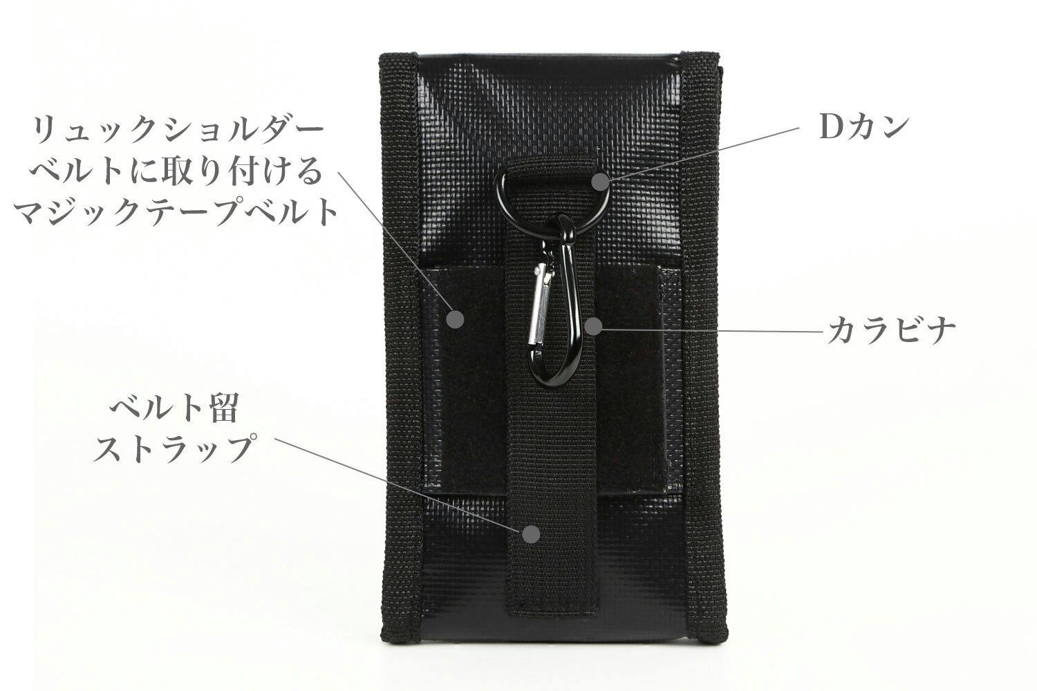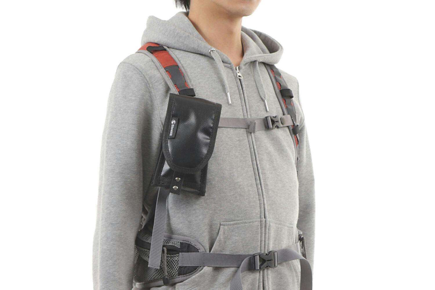 リュックのショルダーベルトに取り付けて、さっとスマートフォンを取り出せます。