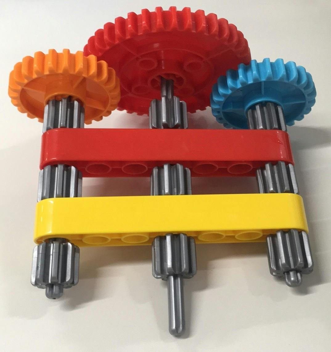 赤いギヤを下にして回して遊ぶものでした。オレンジと青のギヤはただの飾りで、回りません。この発想力は見習いたいです。
