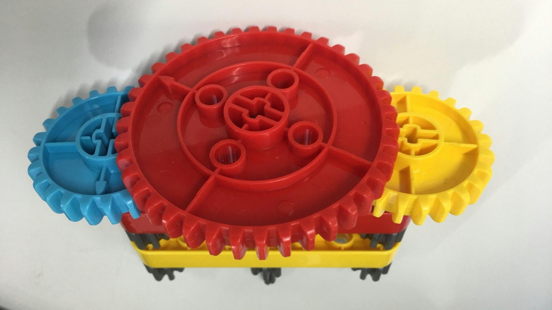 見た目はかわいらしいですが、これはいったいなんなのでしょう?ギヤが3つ使われていますが、かみ合っていないので意味はありません。作成者の7歳児に聞いてみたところ、