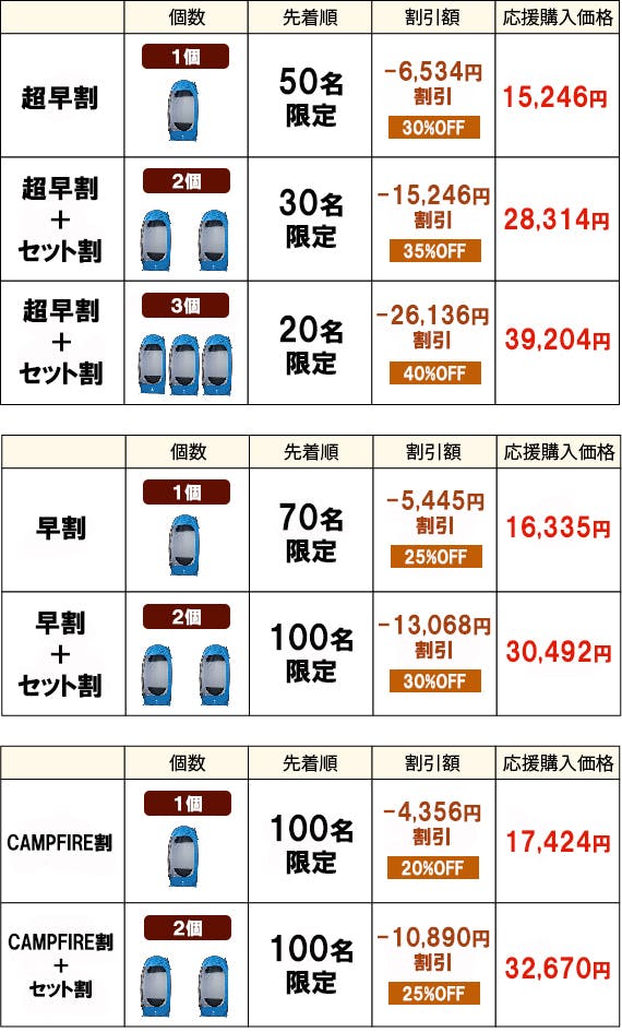 ■2022年1月上旬~ : リターン開始(お申込み順に順次発送させていただきます。)