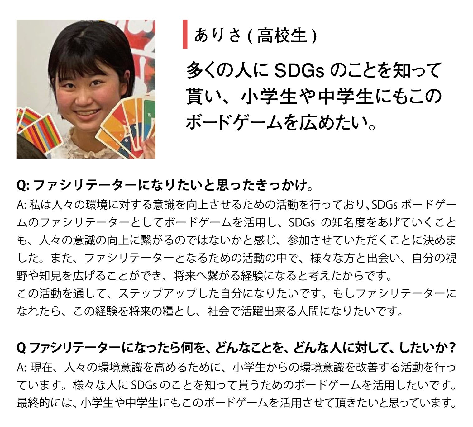 持続可能な世界の実現に向け、ただSDGsの具体事例を学ぶだけでなく、そこから自分との共通点を見つけ出し、同じ思いを持った仲間を集める活動を加速するため、SDGsボードゲーム公認ファシリテーター認定制度を2019年夏に構築しました。