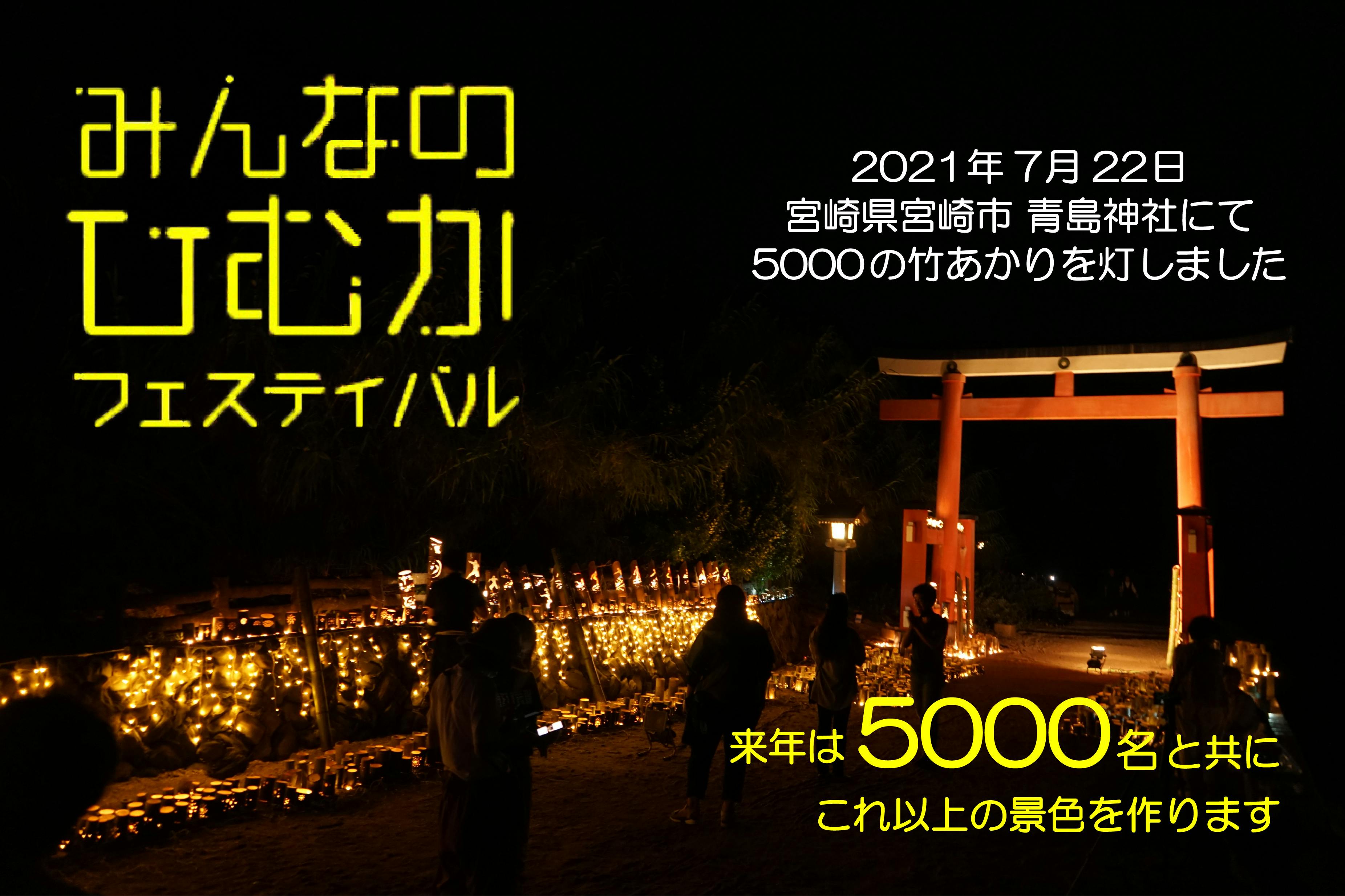 老若男女だれにでも自由に作ることができる「竹あかりづくり」を通して、宮崎人の繋がりをさらに強くしていくことを目指し、初年の今年は5000灯の竹あかりを灯します!