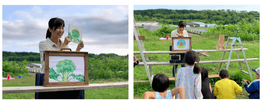 2021年6月には、ご購入者様に寄贈していただいた、多世代型放課後クラブ「かやぶきの家まねきや」の学童さんたちに、出張紙芝居をプレゼントしました。