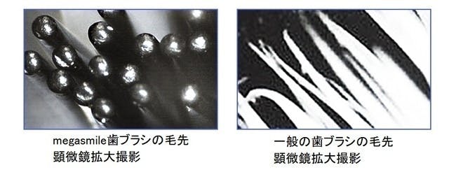 活性炭を利用し、活性炭粒子を歯ブラシの毛に閉じ込めたものが「megasmile ホワイトニング歯ブラシ」です。