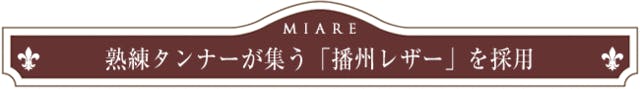MIARE(ミアレ)の元となる、牛革は、国内約7割のシェアを誇る兵庫県姫路市で製革された「播州レザー」。播州は播磨国とも呼ばれる、兵庫県南西部の名称です。