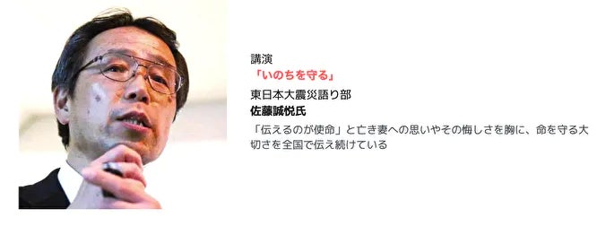第1部では、震災語り部佐藤誠悦さんに、「あの日からの人生」を語って頂きます。