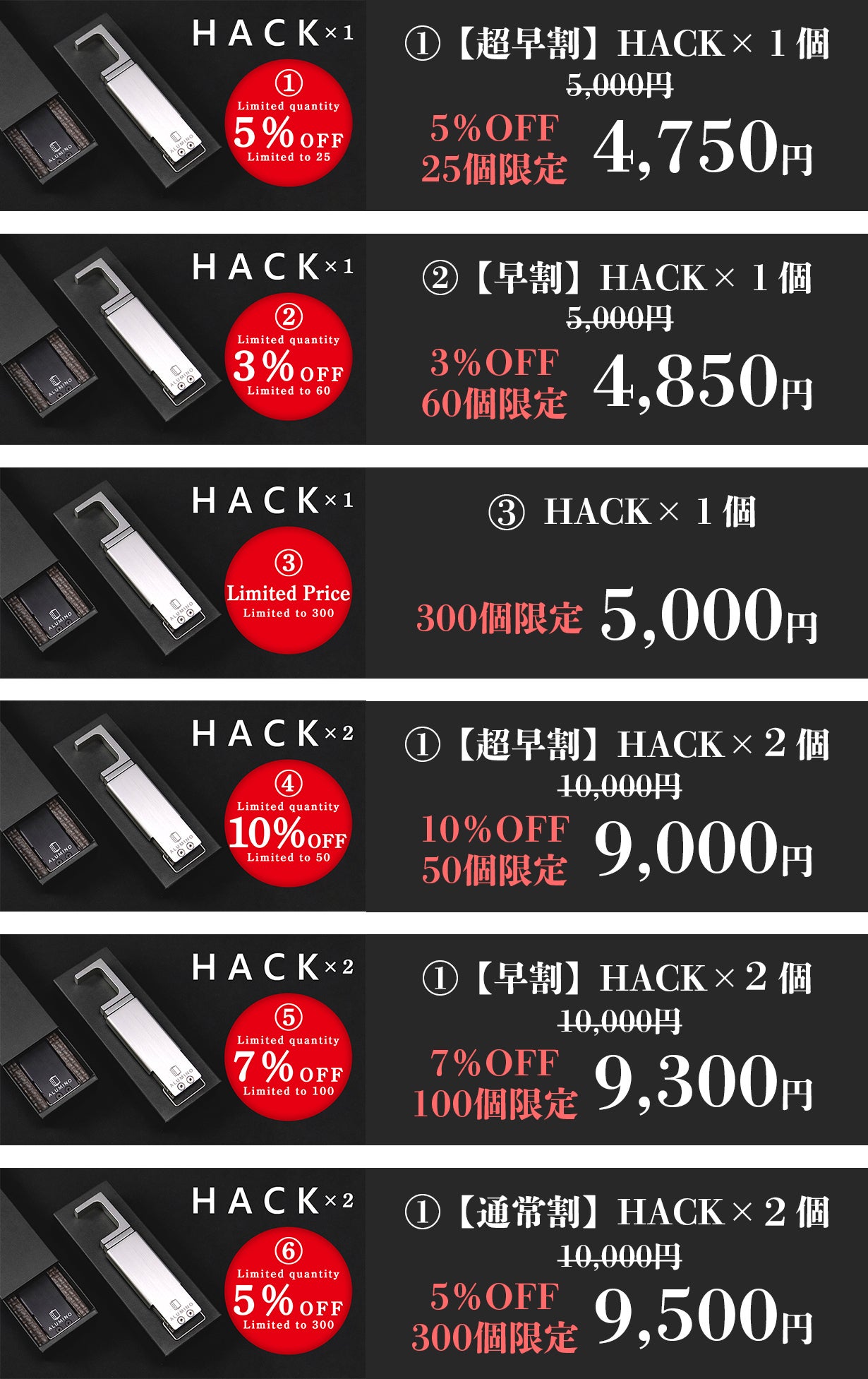 HACKの由来は、この商品の主な機能のHanger(ハンガー)Hook(フック)と生活を効率よく安楽に過ごすための手法や技術の事をさすLife HackからHACKという名前にしました。