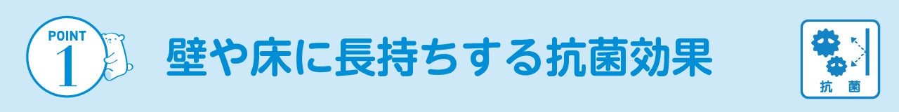 物体表面の菌やウイルスを退治するとともに、そのまま表面にのこり、新たに付着した菌も退治します。