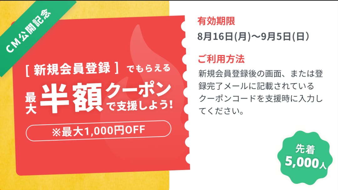 2021/08/24 18:59最大1000円割引されるクーポンが期間限定で発行されている模様。お得にリターン品をゲットしましょう!明日新たなリターン品を公開予定。お楽しみに! もっと見る
