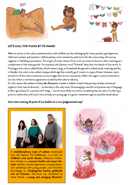 オーストリアの性教育の児童書「リナの大冒険」推定5〜6歳?のリナが自分の生殖器を探索するお話し。生殖器の呼称自体、なんと呼ぶのか?問題なのは外国でも同じなんです。