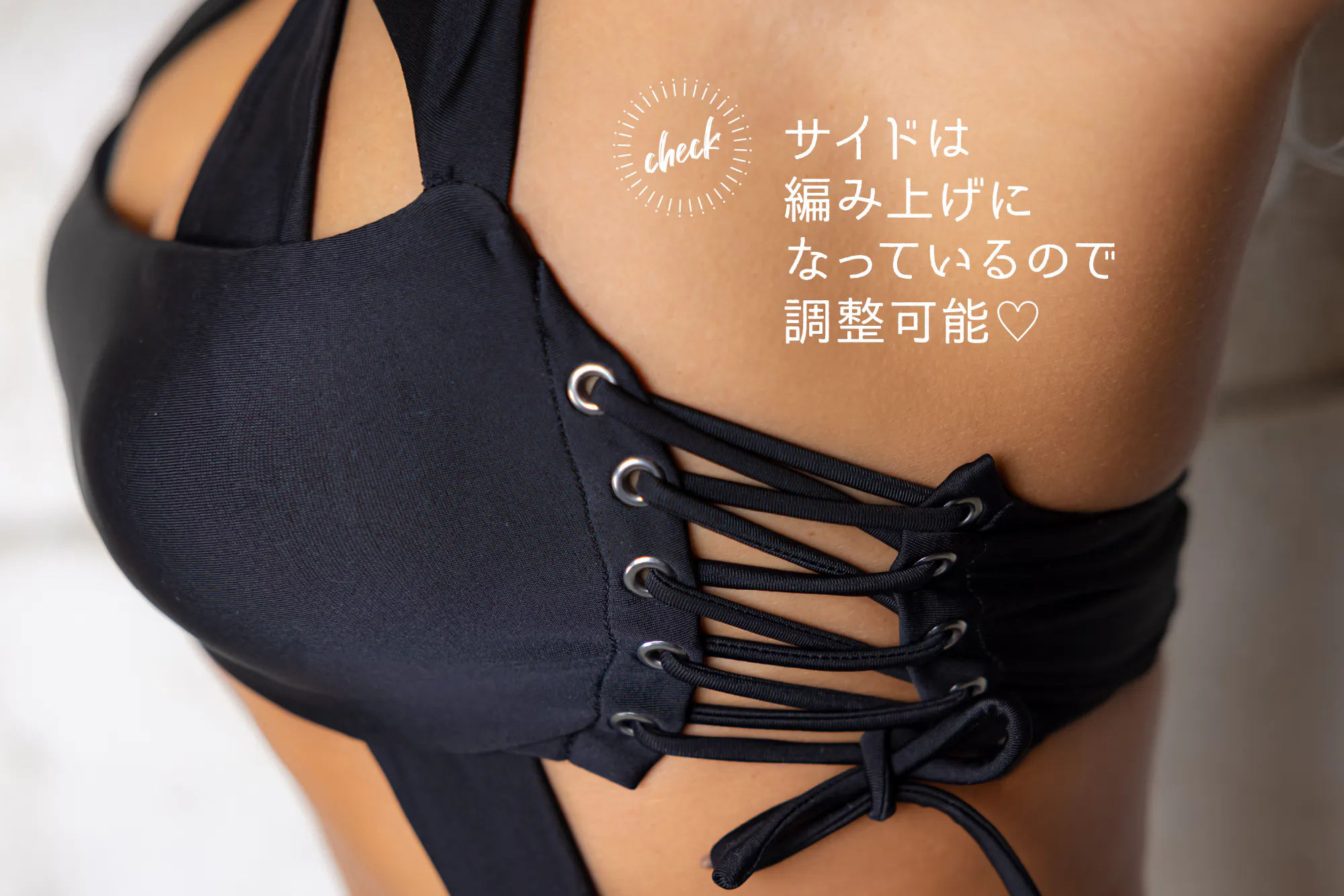 脇下の編み上げでサイズを調整頂けます。