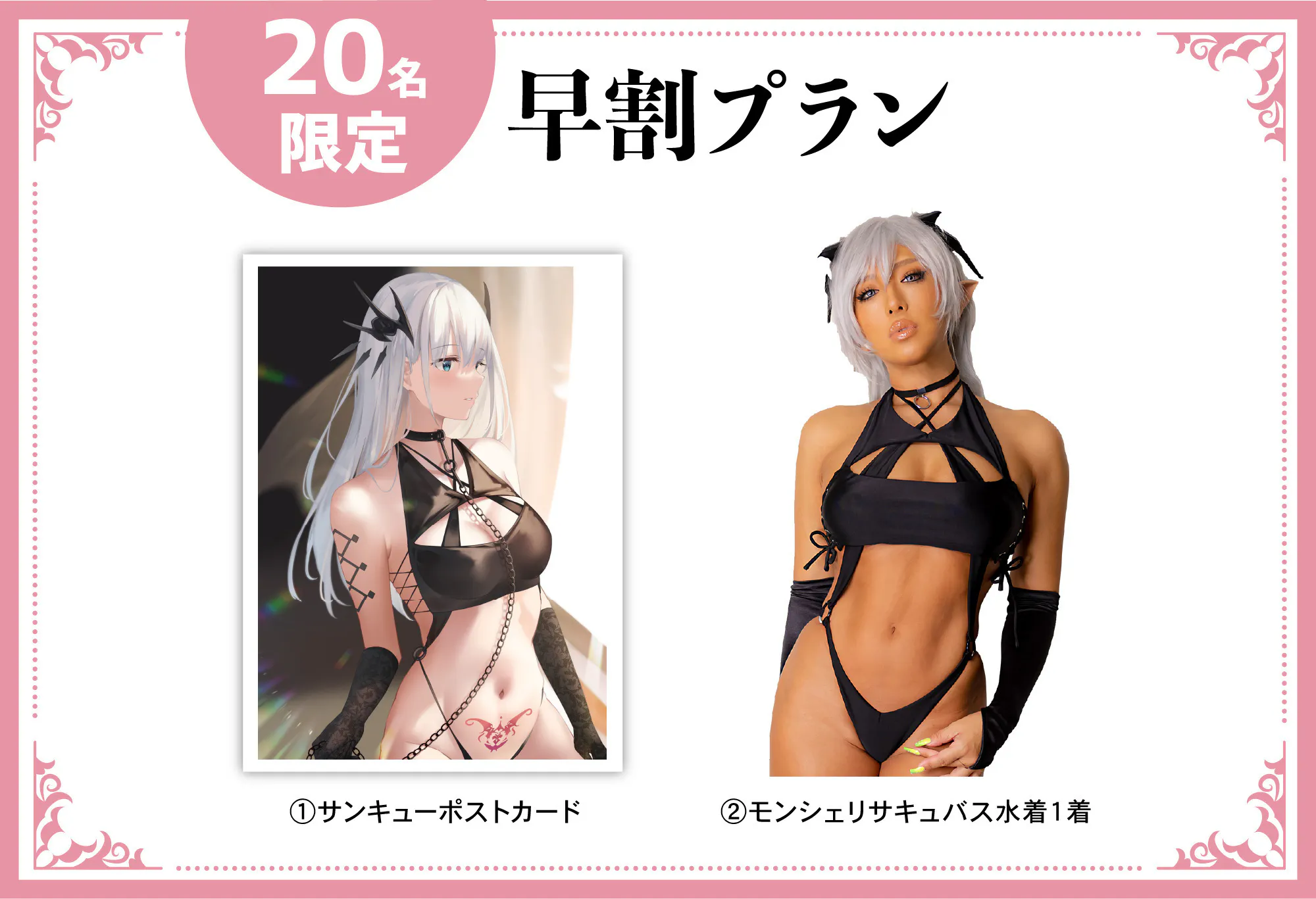 先着20様限定で今回のモンシェリサキュバス水着 をちょっとお安くご支援可能!