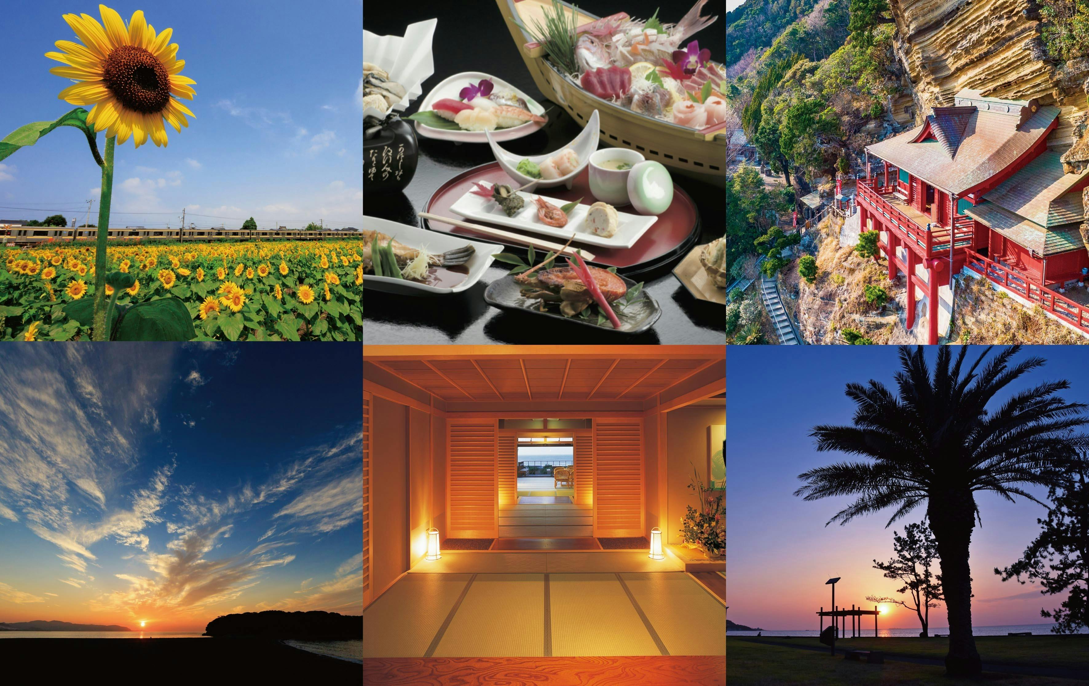 房総半島の南、海と緑に囲まれた自然豊かな観光地でもある人口4万5千人ほどの千葉県館山市。冬でも温暖な気候で、早春からポピーや菜の花が咲く花の地域です。東京湾に面し、富士山を望め、夕景の美しい海岸線が連なります。サーフィンやSUP,ダイビングなどのマリンスポーツ、冬にはいちご狩りも人気。食材豊かで、地魚料理を楽しみに宿でのんびり過ごす楽しみも。