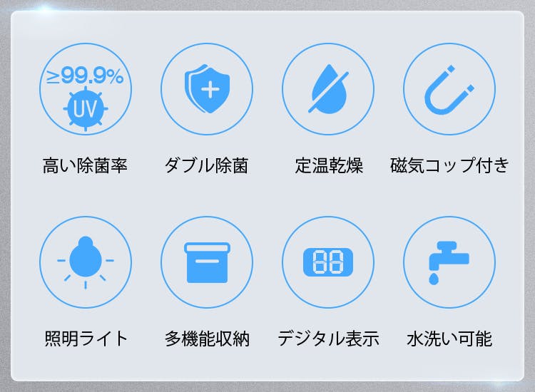 また、360度対流によって歯ブラシについた水分を飛ばすことで、除菌した後の歯ブラシをより清潔に保ちます。