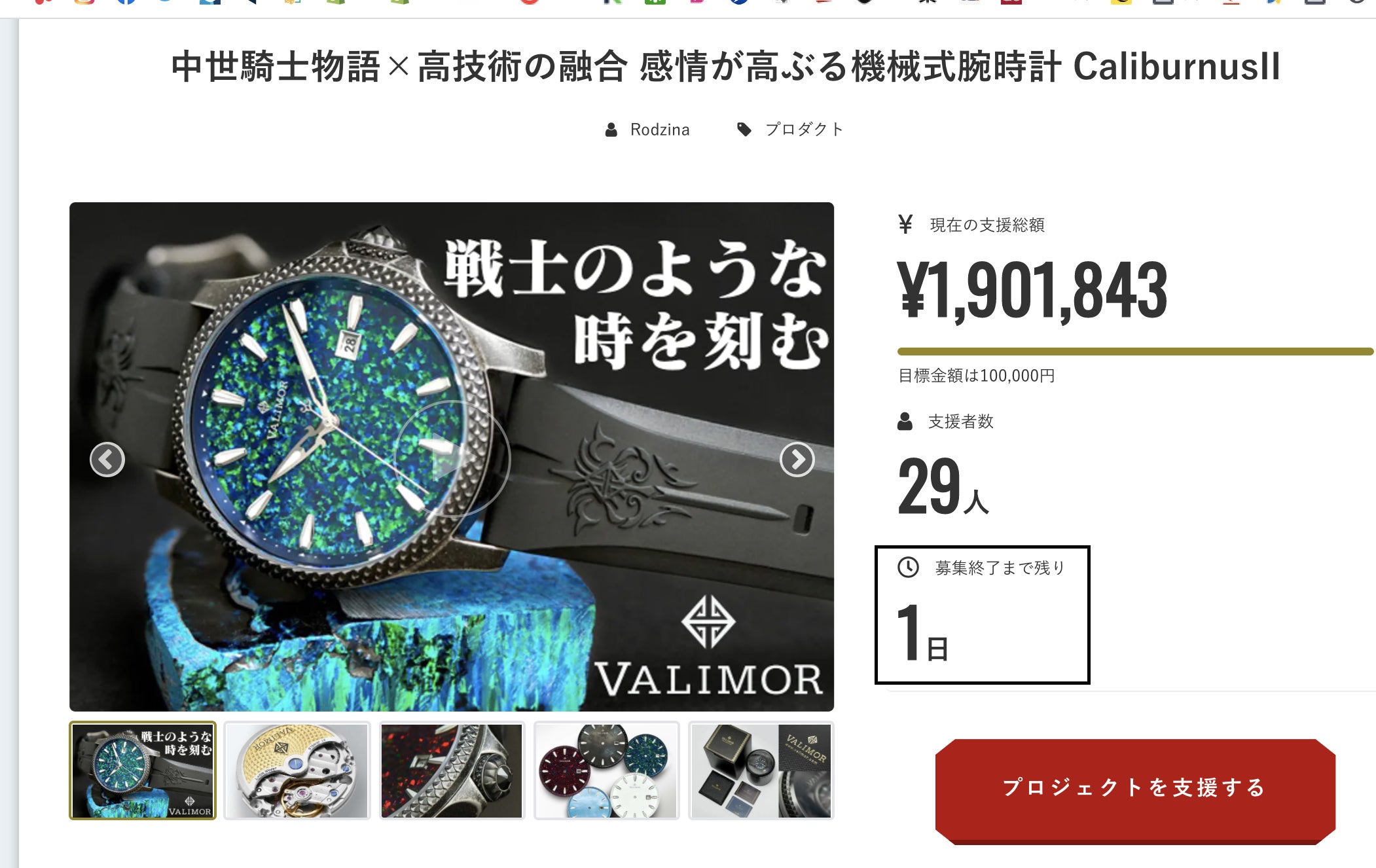 プロジェクト実行者、VALIMOR JAPANです。男らしさを演出してくれるVALIMORの腕時計は、大変人気で第1弾モデルは1年間で300本以上注文を受けております。新しい腕時計をリリースする事はでき大変嬉しく思います。