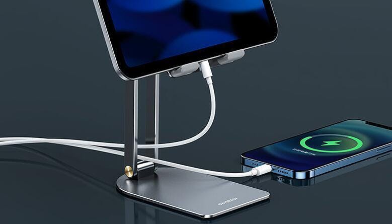 映画観賞やネットサーフィンなど、長時間の使用は電池を消耗します。そんな時、充電ケーブルを繋いだまま使えたらもっと便利ですよね。独創的な設計で、ケーブルを通すホール付き、端末を装着したままデバイスへの充電を行うことができます。