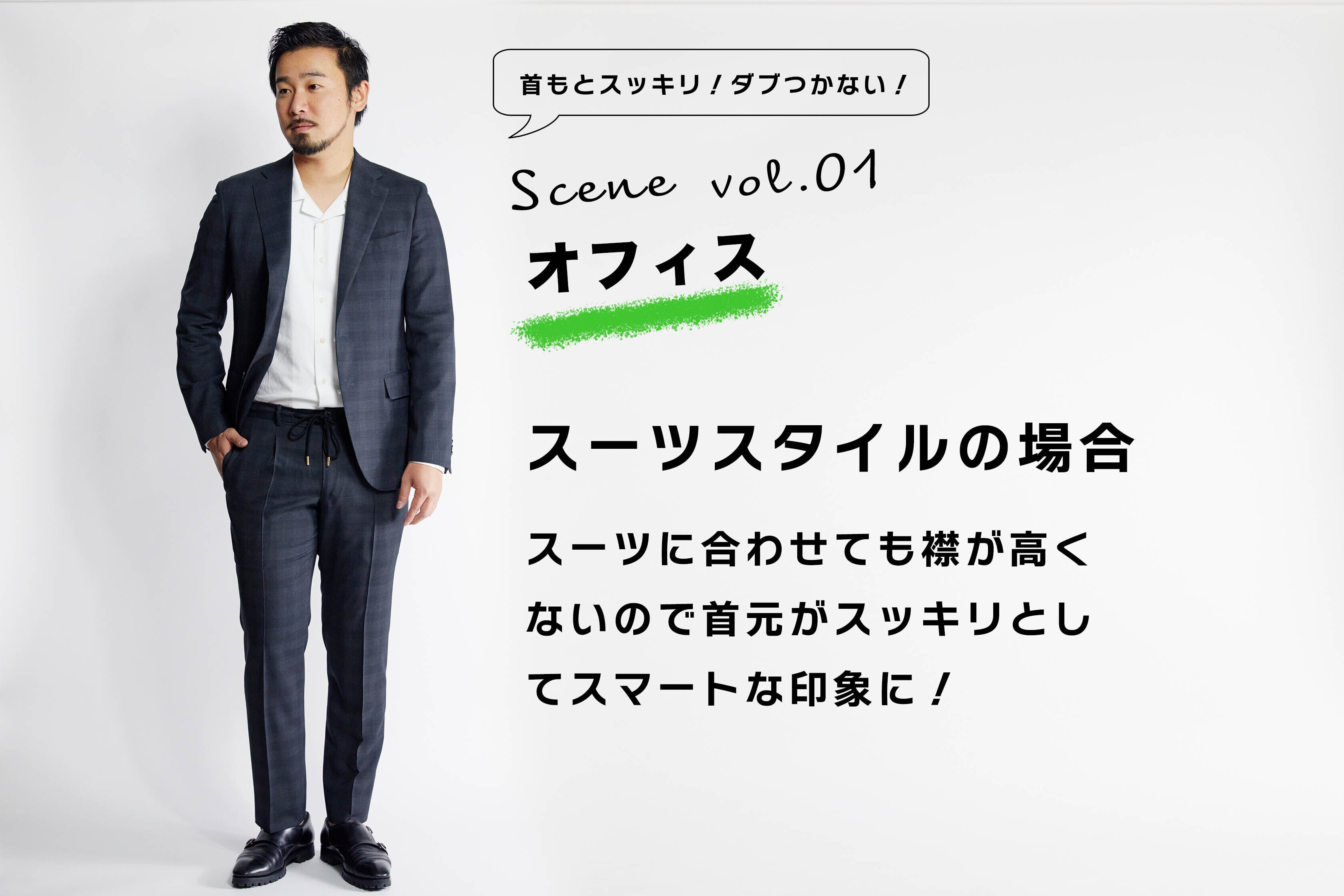 答え : それは歴史的に暑さ対策や快適さを重視して生まれた開襟シャツのエッセンスに取り入れているから!リモートワークにもクールビズにも最適!