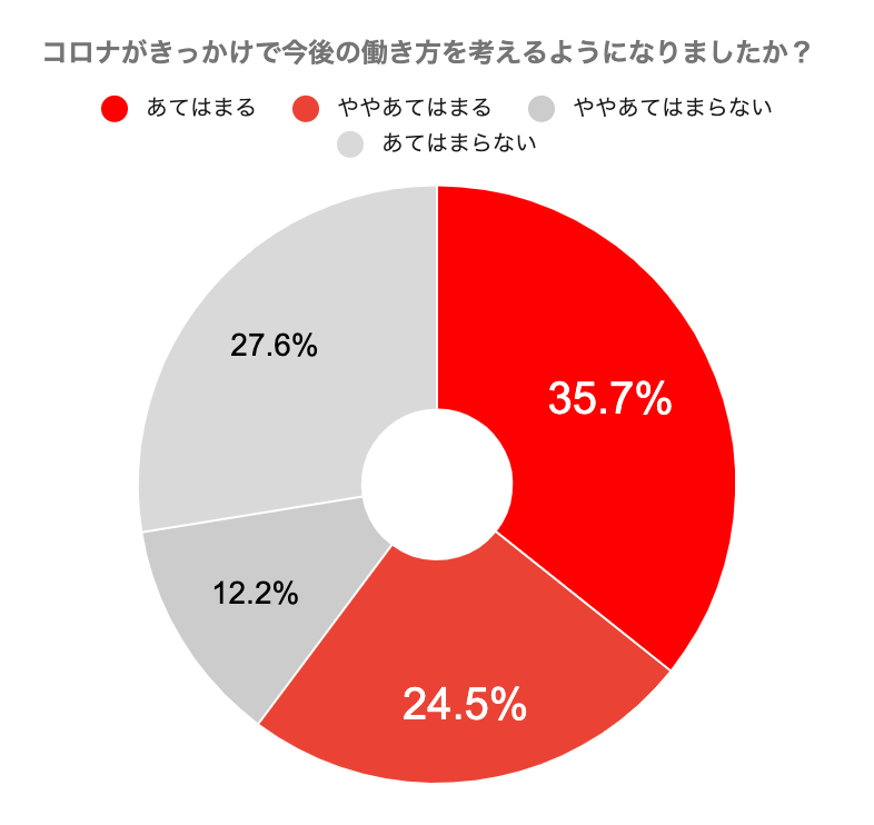 60%以上の方がコロナがきっかけで働き方を考えるようになったと回答しています。