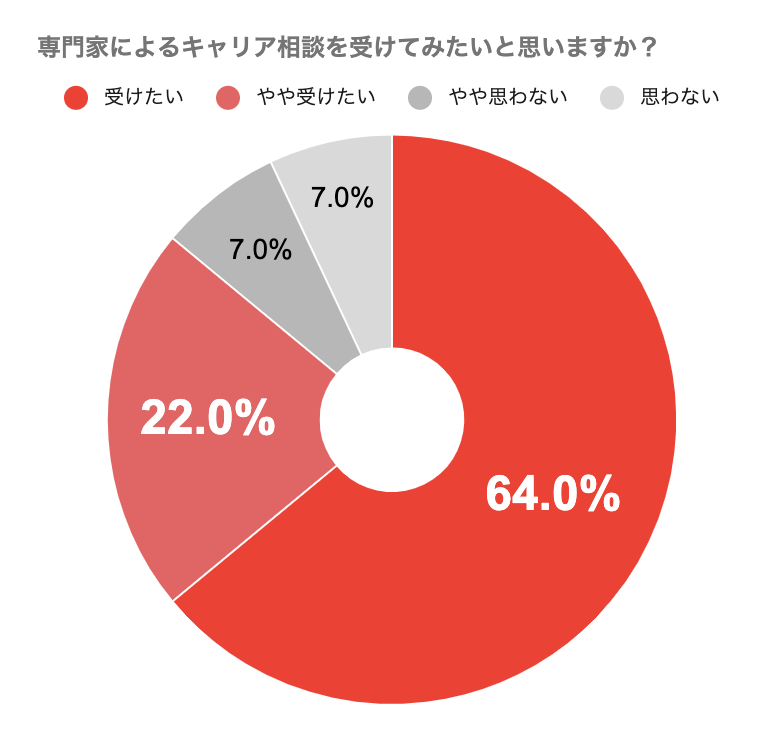 アンケートに回答いただいた85%以上の方がキャリア相談の機会を求めていることが分かりました。