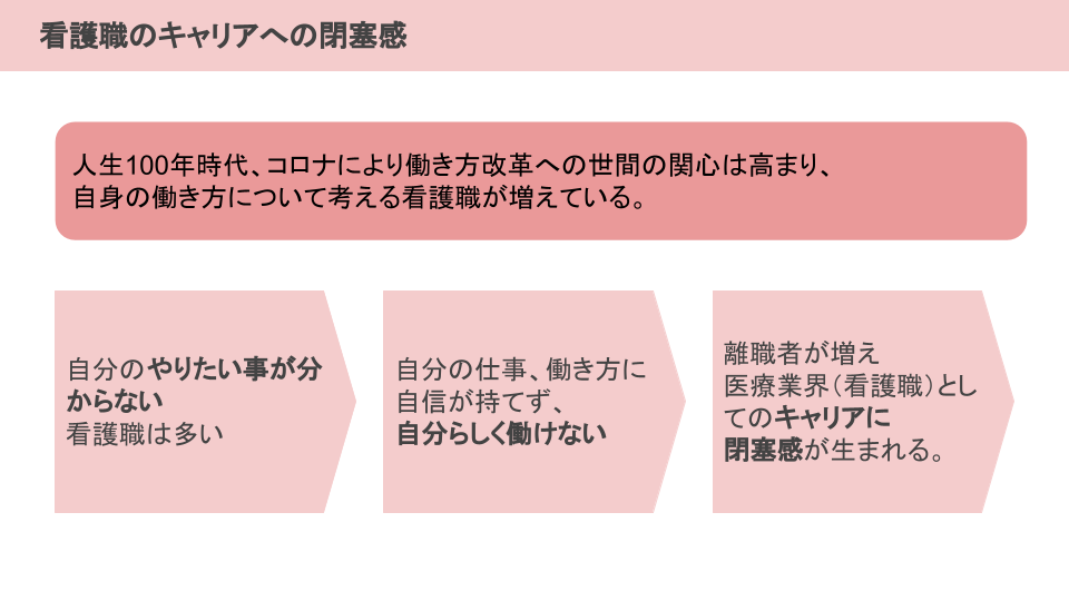 このプロジェクトは看護師のキャリアの課題解決だけでなく、今後の日本のヘルスケアを明るくするものだと考えています。