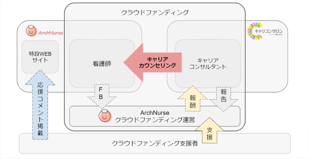 そして、皆さまからのご支援により、キャリア相談をしたい看護職が"無償"でキャリアコンサルタントにキャリア相談をすることが可能になります。