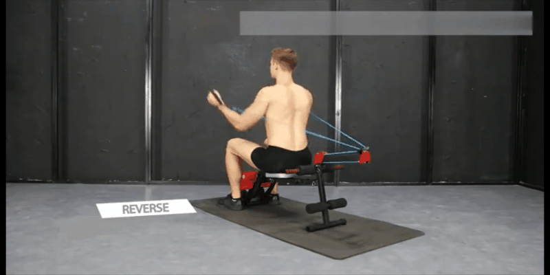 これまでベンチ型のトレーニングマシンは腹筋がトレーニングの中心でしたが、ローイングバンドが付いているので上半身の筋力トレーニングもすることができます。