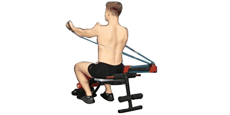 これまでベンチ型のトレーニングマシンは腹筋がトレーニングの中心でしたが、ローイングバンドが付いているので上半身の筋力トレーニングもすることができます。